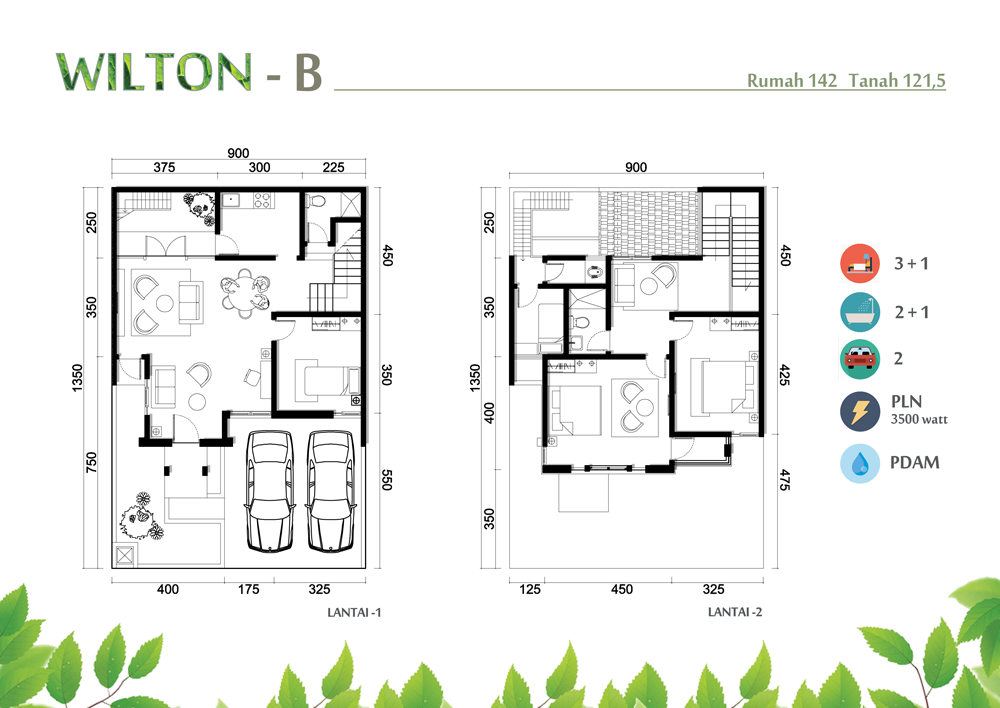 Wilton B merupakan tipe favorit dengan 3+1 KT, 2+1 KM, dan 2 Carport untuk gaya hidup keluarga modern.